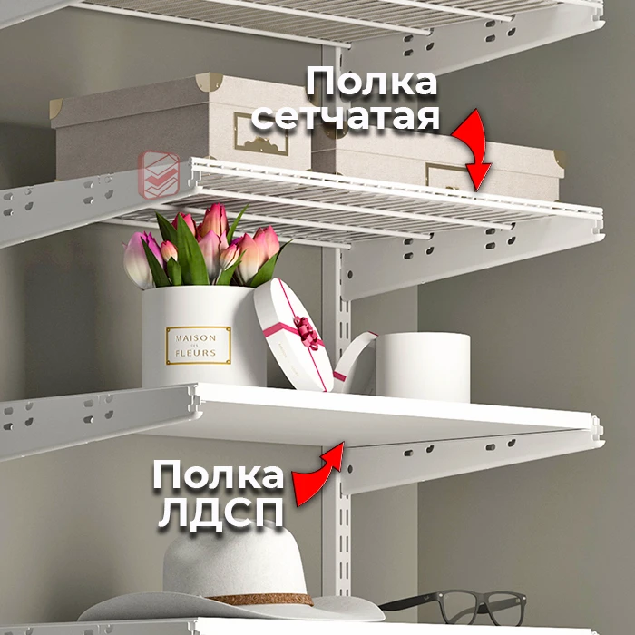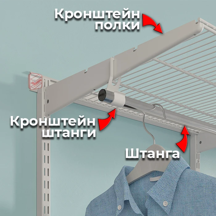 - Несущие рельсы, стойки, полки и штанги системы ПРАКТИК Home для надежной сборки и максимальной прочности.