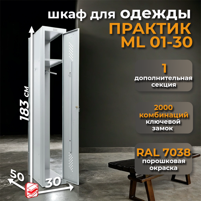 Шкаф ML 01-30 — это высококачественная и практичная модель для хранения одежды, идеально подходящая для использования в офисах, складах, производственных и общественных помещениях. Конструкция шкафа выполнена из прочного металла с усилением сварной рамой, что обеспечивает отличную устойчивость и долгий срок службы.