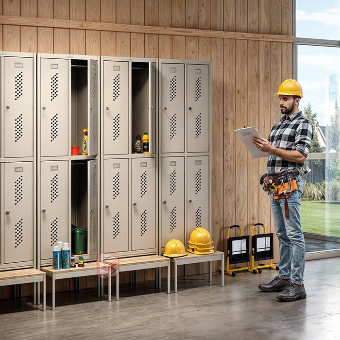 Шкаф представляет собой надежное и долговечное решение для хранения одежды в условиях высокой эксплуатации. Изготовлен из жесткого металла, усиленного сварной рамой, что гарантирует долговечность и устойчивость конструкции.