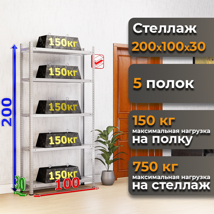 • Высокая грузоподъемность: Каждая из 5 полок выдерживает до 150 кг, общий вес распределяется до 750 кг.