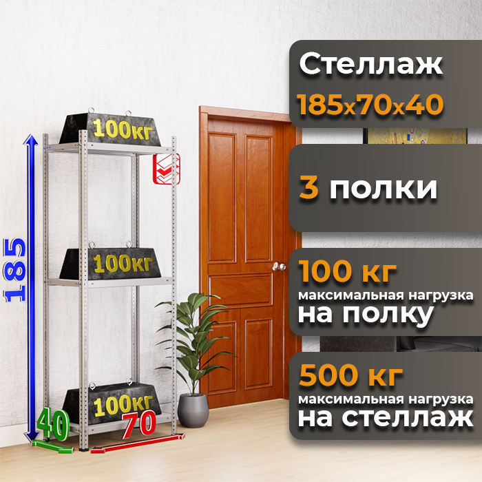Стеллаж полочный 185х70х40 с 3 полками MS Standart: практичное решение для организации пространства.