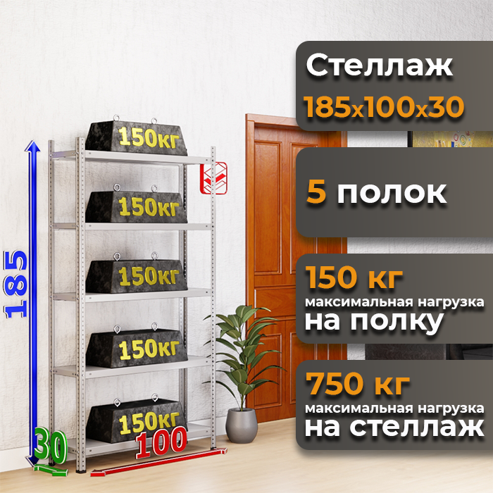 • Высокая грузоподъемность: Каждая из 5 полок выдерживает до 150 кг, а общая нагрузка на стеллаж достигает 750 кг.